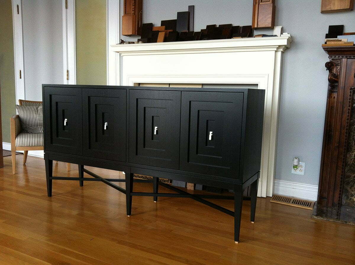 Vas Design offers an array of custom furniture: From bookcases and dining room tables to fireplace mantels, cupboards and consoles, each piece is crafted with the utmost care and tailored to the customer’s needs. Find our pieces displayed at Chicago’s Merchandise Mart, in both Niedermaier’s and David Sutherland’s showrooms. Located in the heart of Chicago, the Vas Design showroom and workshop house the entire creative and production process of the business. From the initial drawings to the finishing touches of the completed piece, every step of the creation process takes place in the workshop. All veneering, custom mouldings, and drawer-boxes are done from scratch including all hand-applied techniques and finishing touches.